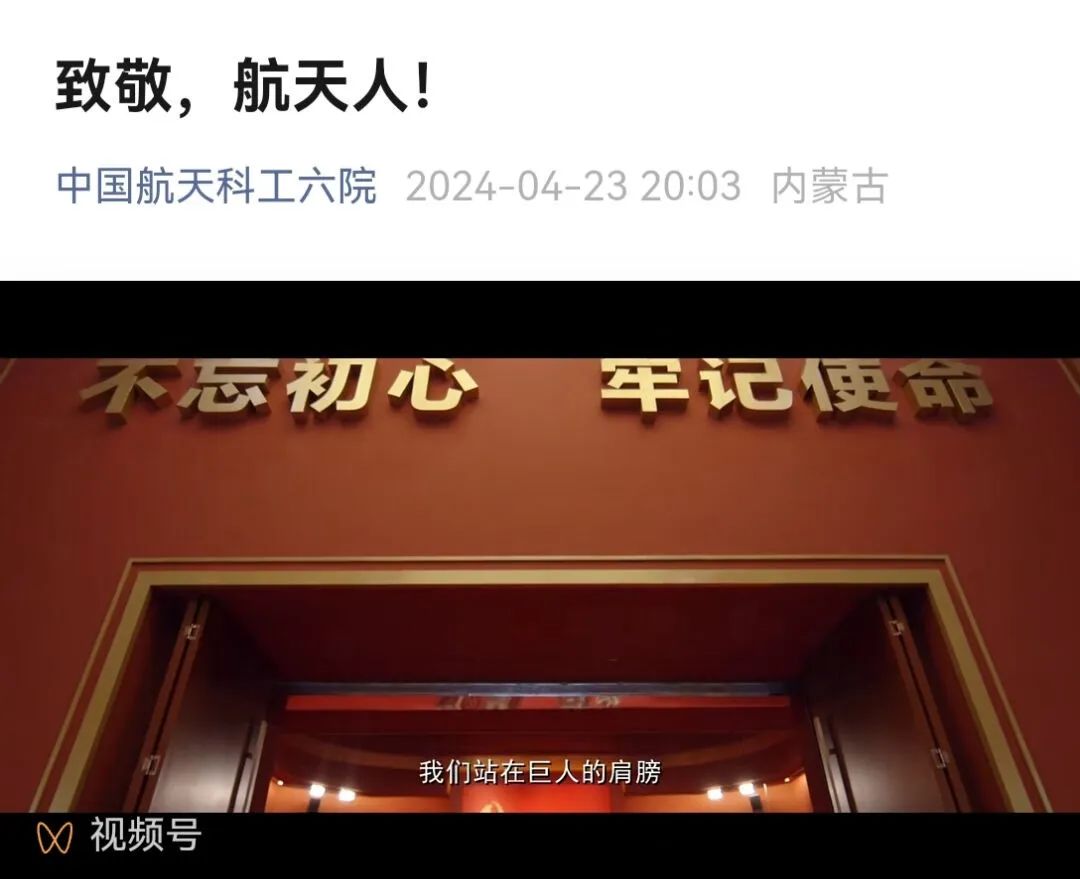 六院在中国航天日前夕特别推出《致敬,航天人》专题短片。3分钟的视频里,通过《我和我的父辈》《横空出世》《钱学森》等大家喜闻乐见的电影片段以及六院的历史资料,生动形象的展现了中国航天固体动力事业暨六院从无到有,从小到大,由弱到强的发展历程。震撼的影像、感人的瞬间,体现了航天人始终坚守“国家利益高于一切”核心价值观,矢志强军兴军、建设航天强国的初心使命。
