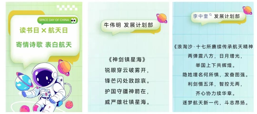 四院17所开展“读书日X航天日 寄情诗歌 表白航天”活动,向各部门征集航天主题的诗词,作品韵律优美,展现了航天人的豪情壮志,抒发了对航天事业的无限热爱。
