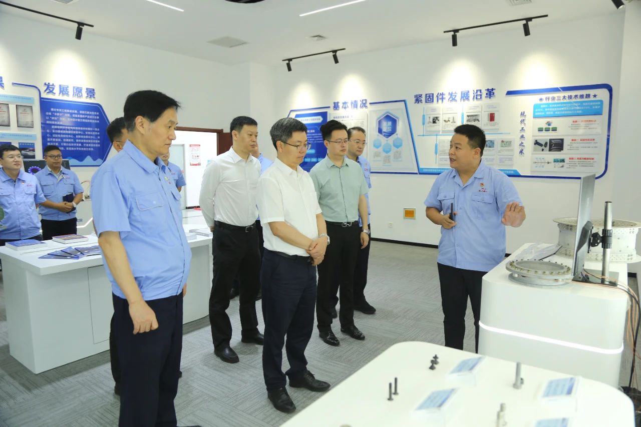 27日上午,陈锡明一行来到航天精工,深入航天精工研究院、机加镦制车间、高端抽芯铆钉自动化生产线等科研生产一线开展实地调研。陈锡明详细了解了航天精工技术研发和产品配套等方面情况,听取了航天精工关于生产经营、发展规划、党的建设和巡视整改等方面的情况汇报。