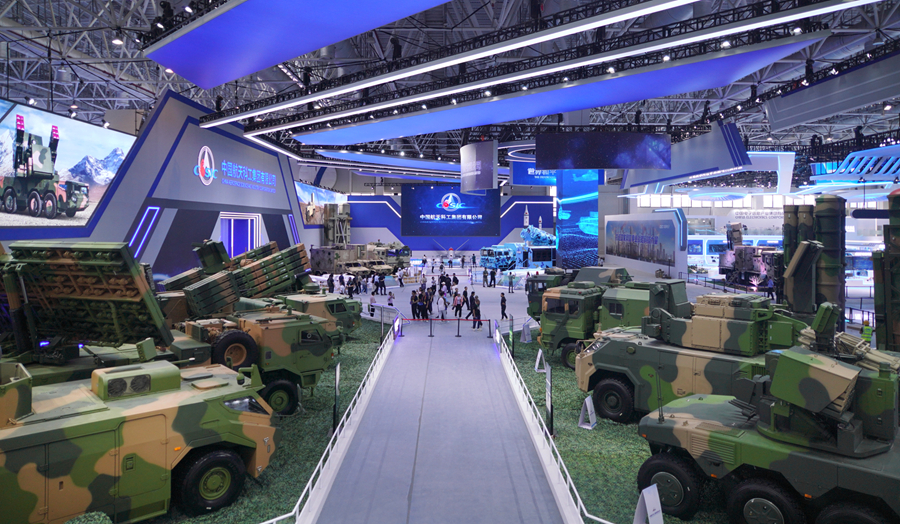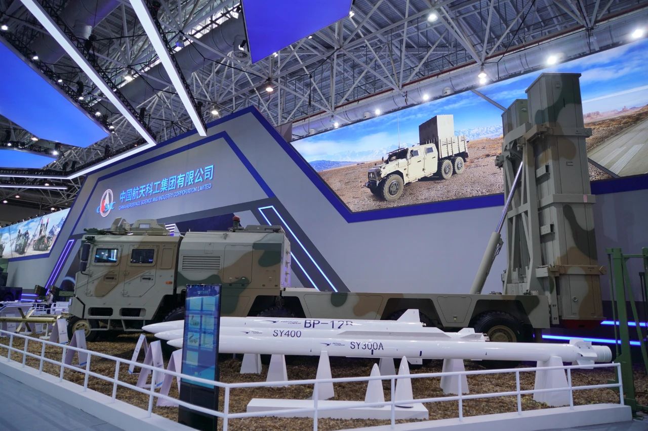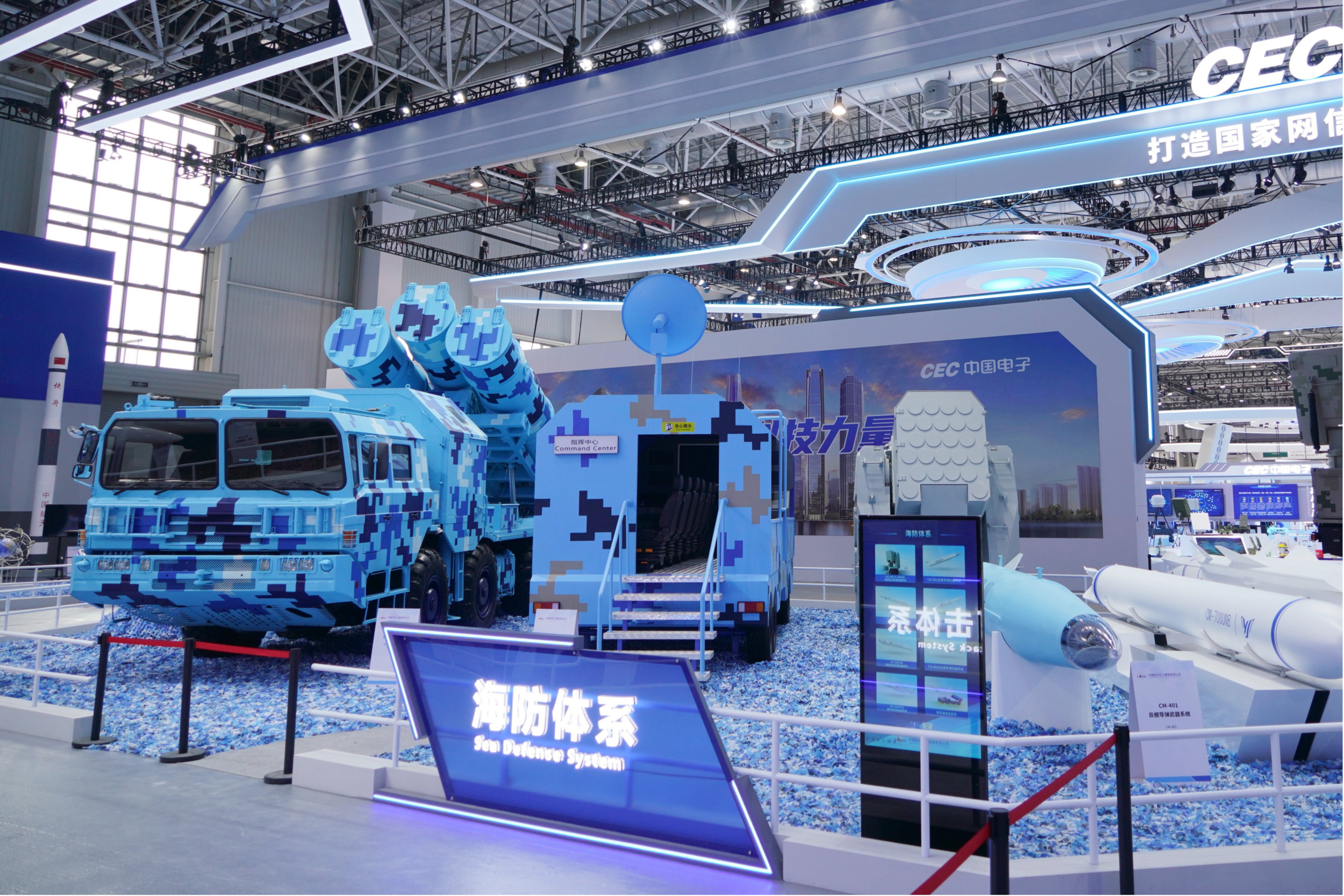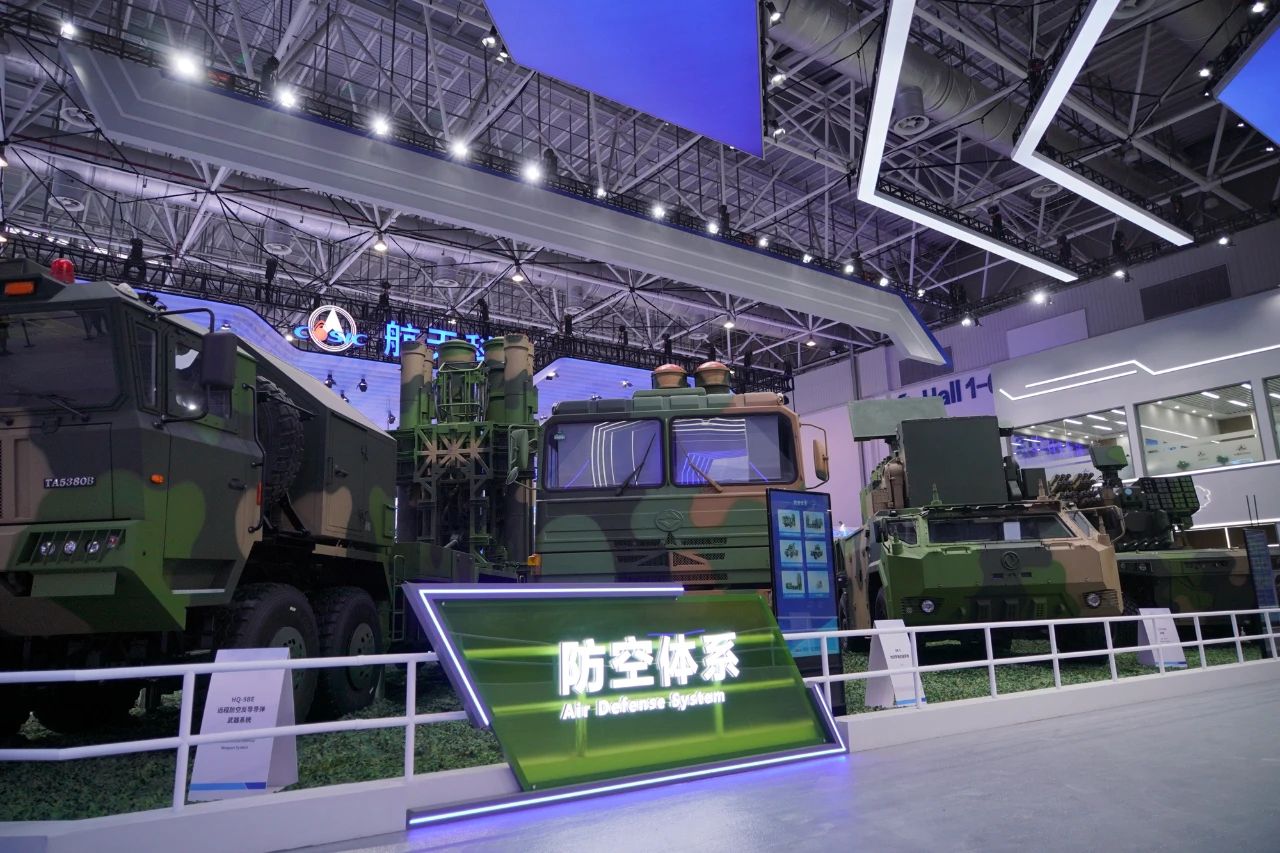 在中国航天科工集团有限公司防空体系展区,HQ-9BE远程防空武器系统、FD-2000A中远程防空武器系统、FK-3中远程防空武器系统、HQ-17AE近程防空武器系统等“明星装备”焕新亮相。