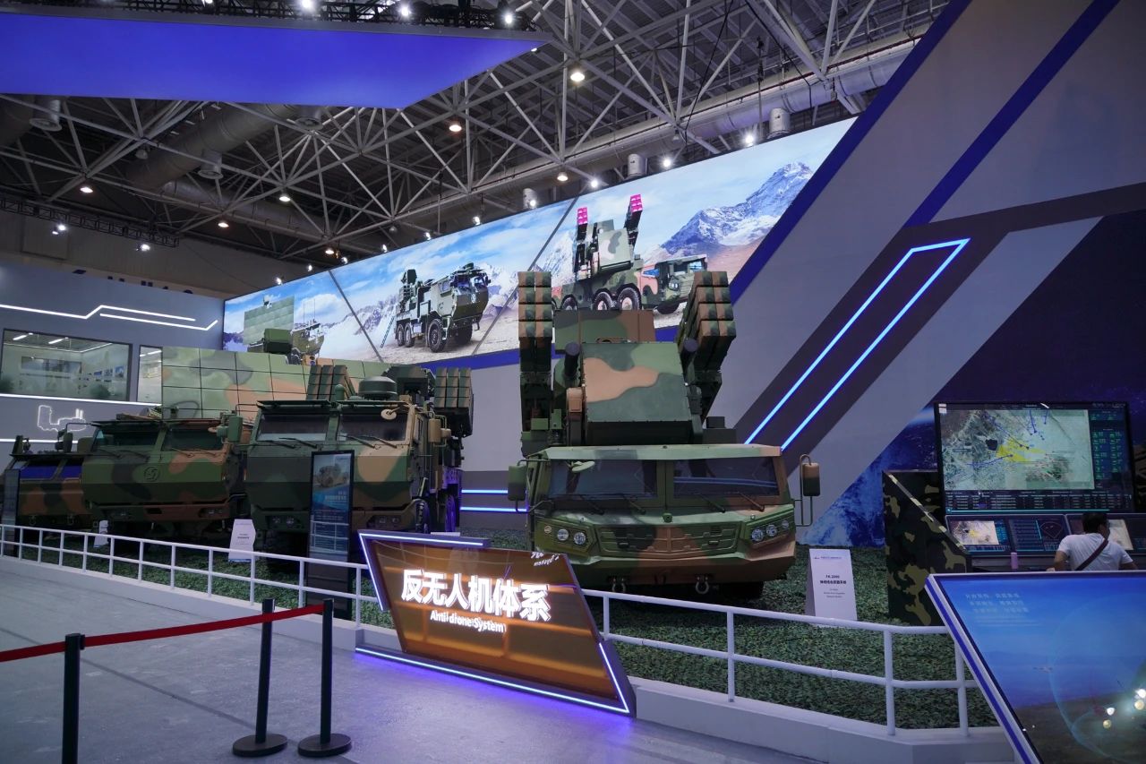 在防空体系展区,HQ-9BE远程防空武器系统、FD-2000A中远程防空武器系统、FK-3中远程防空武器系统、HQ-17AE近程防空武器系统等“明星装备”焕新亮相。