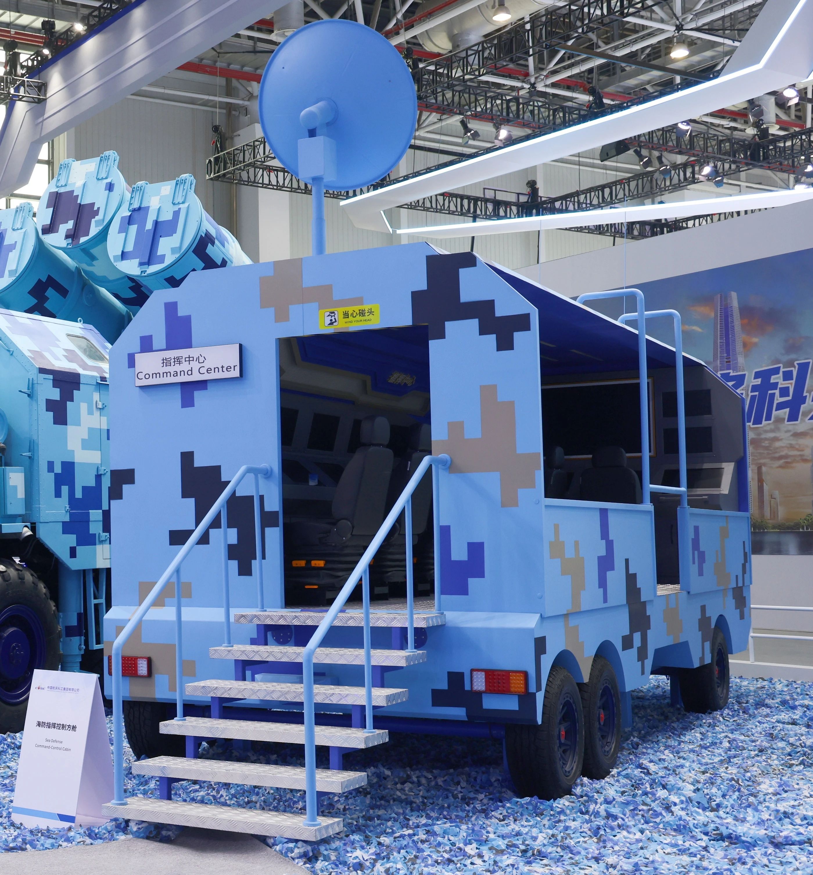 首次亮相的海防指挥控制方舱是海防体系的“最强大脑”,负责指挥控制岸基、海上、水下、空基等多型作战平台完成对海、对陆作战任务,辅助指挥员制定作战计划与行动计划,实施作战指挥、行动控制与武器交战控制、作战效果评估,是指挥效能与火力效能的“倍增器”。