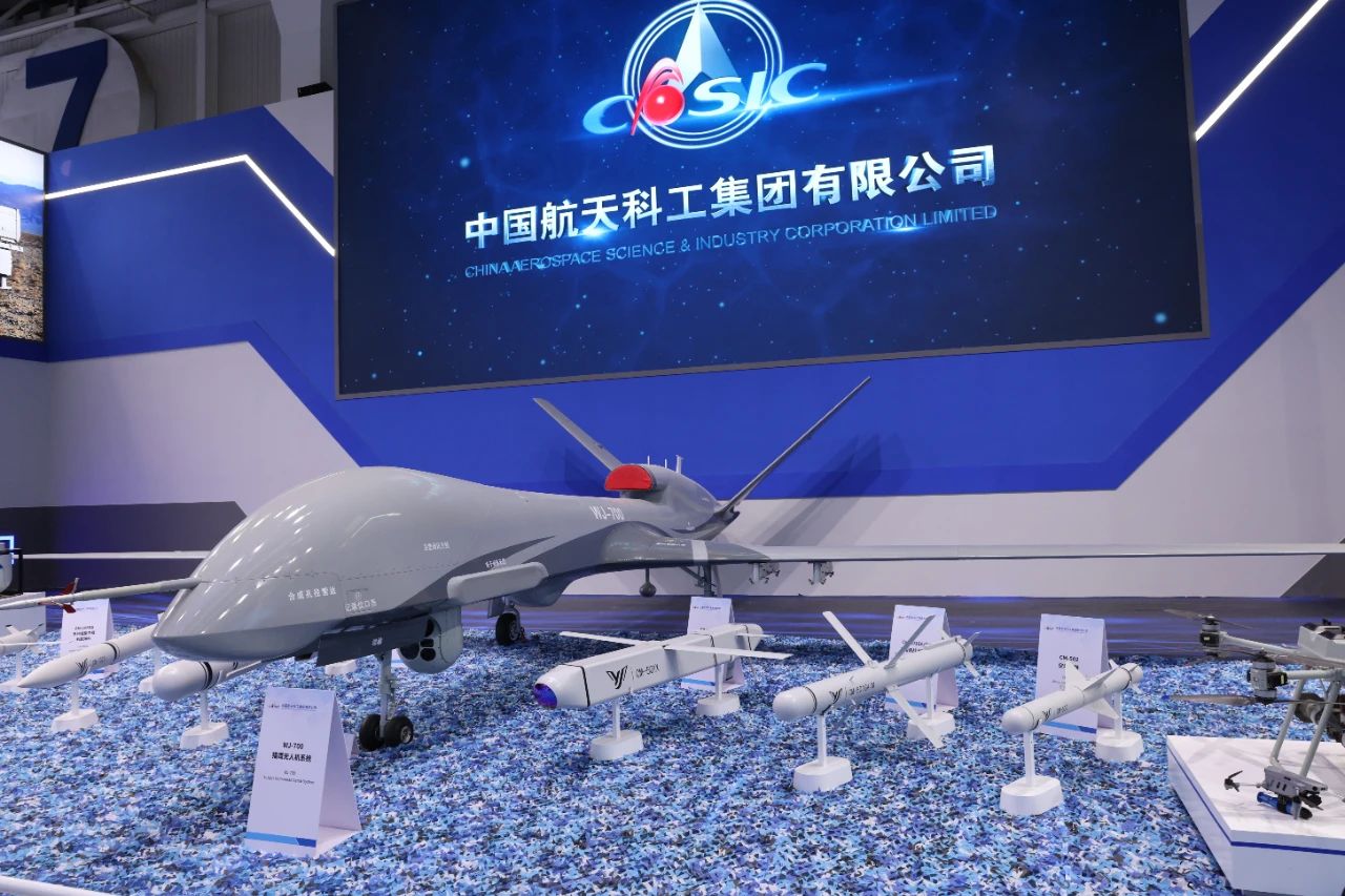 中国航天科工集团有限公司携旗下全新升级的无人作战体系亮相,WJ-700“猎鹰”高空高速长航时察打一体无人机、WJ-500无人机及系列机载弹药再次登场。