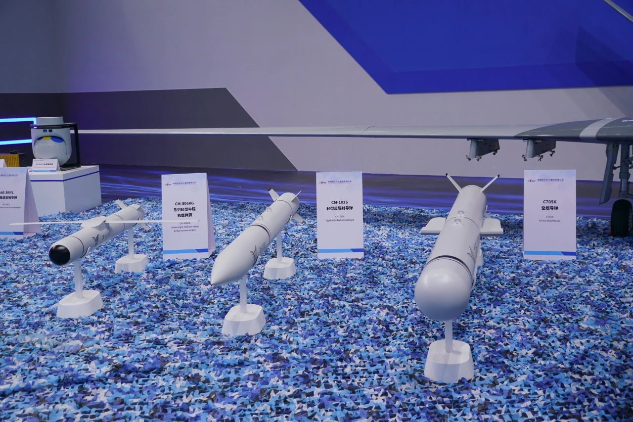 无人作战体系展出了种类丰富的机载弹药。典型战术目标打击方面,可挂载C705系列防区外导弹、CM-501系列导弹、CM-502系列导弹、CM-506KG弹药、AG-300系列空地导弹、YZ-200制导炸弹,对目标实施精确打击。