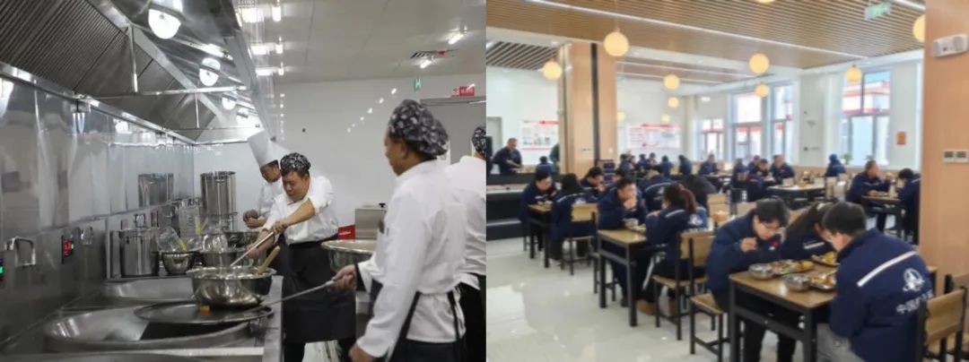 新建红岗餐厅建筑面积约1300平方米,宽敞明亮,可满足700余人就餐。餐厅内部各功能间布局合理,主副食加工间、烹饪区、切配区、存储区、清洗区等一应俱全,确保食品安全健康。
