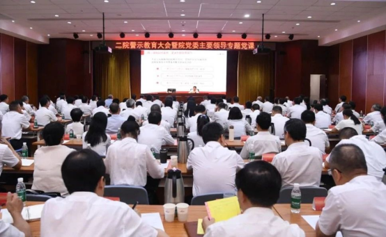 6月25日,二院召开深入贯彻中央八项规定精神学习教育警示教育大会暨院党委主要领导专题党课辅导会。会上,郭大勇以《坚持警钟长鸣、以案为鉴,为奋力推进二院高质量发展提供有力作风保障》为题作专题党课授课并开展警示教育,通报集团公司近期警示教育大会、集中整治违规吃喝专题推进会议精神,并结合集团公司和二院发生的典型案例,带领大家深刻反思在贯彻落实中央八项规定精神方面存在的问题差距。