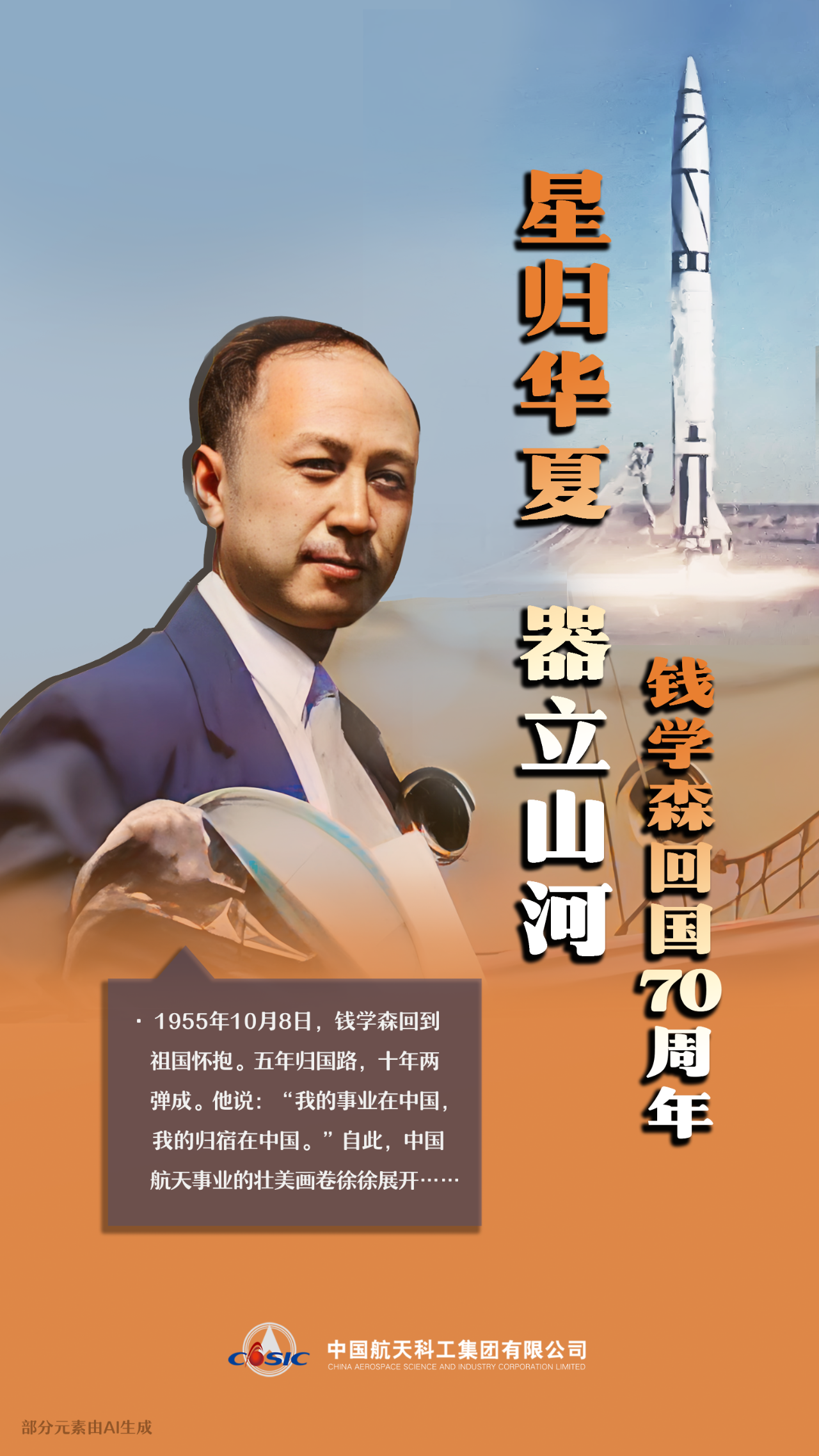 星归华夏、器立山河,追忆钱老、传承精神,继往开来、接续奋斗。(海报/张彤 文案/韩超)