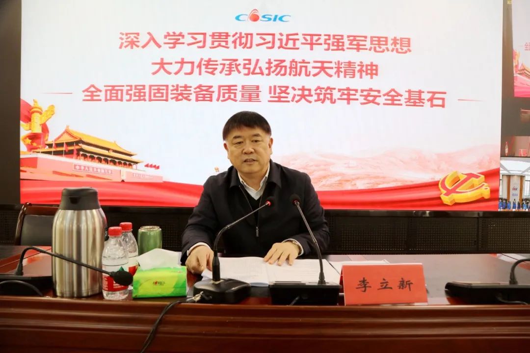 李立新围绕“深入学习贯彻习近平强军思想 大力传承弘扬航天精神 全面强固装备质量 坚决筑牢安全基石”主题,带领大家深入学习习近平强军思想的丰富内涵,习近平总书记关于发展航天事业、加强装备质量、做好安全生产等方面的重要论述和重要指示批示精神。他饱含深情地回顾了中国航天固体动力事业的发展历程,系统阐述了航天精神的特质内涵,紧密结合六院形势任务和具体实例,对学习贯彻习近平强军思想、大力传承弘扬航天精神,进一步强固装备质量、加强安全生产等工作提出了具体要求。