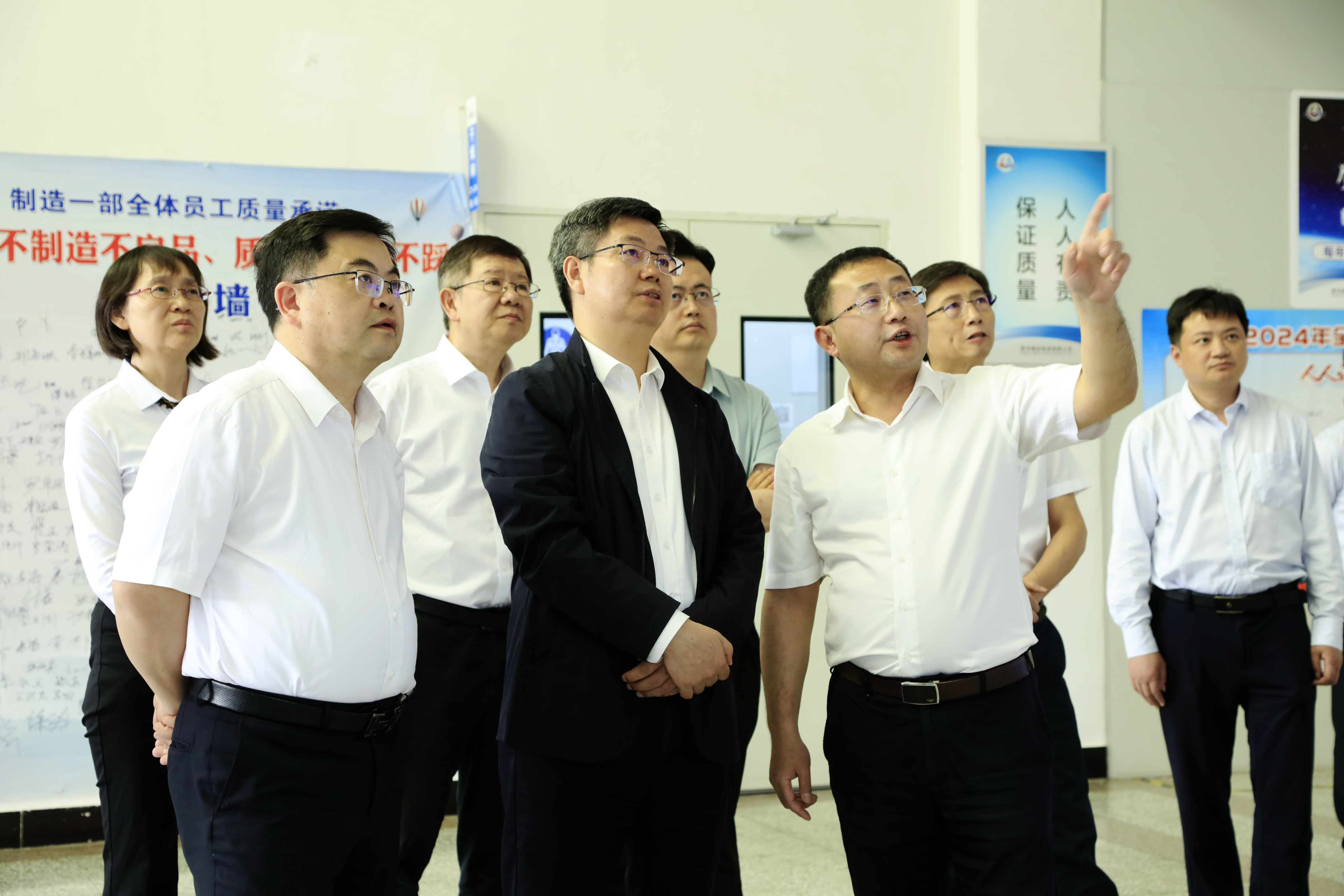 陈锡明一行观看了航天江南成果展示,了解航天江南航天防务事业发展历程,并深入十部、航天电器、梅岭电源、航天天马等单位科研生产一线,调研企业经营、科研生产、科技创新、人才队伍建设等情况,与基层单位负责人、“两总”、一线员工现场沟通交流。