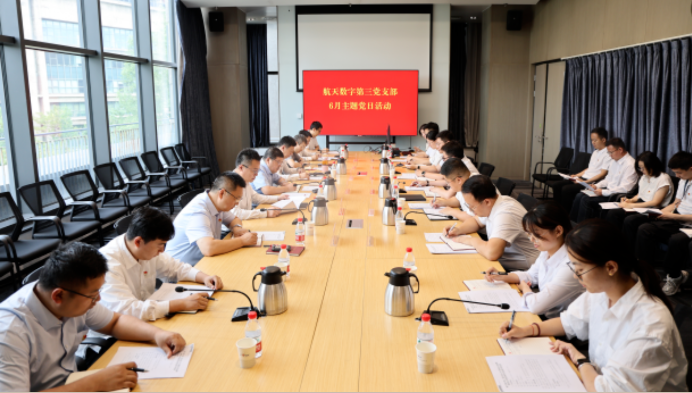 6月26日,中国航天科工集团有限公司党组成员、副总经理周进军到联系基层党支部航天数字第三党支部参加主题党日并讲授专题党课。集团公司总部相关部门领导、航天数字公司领导参加上述活动。