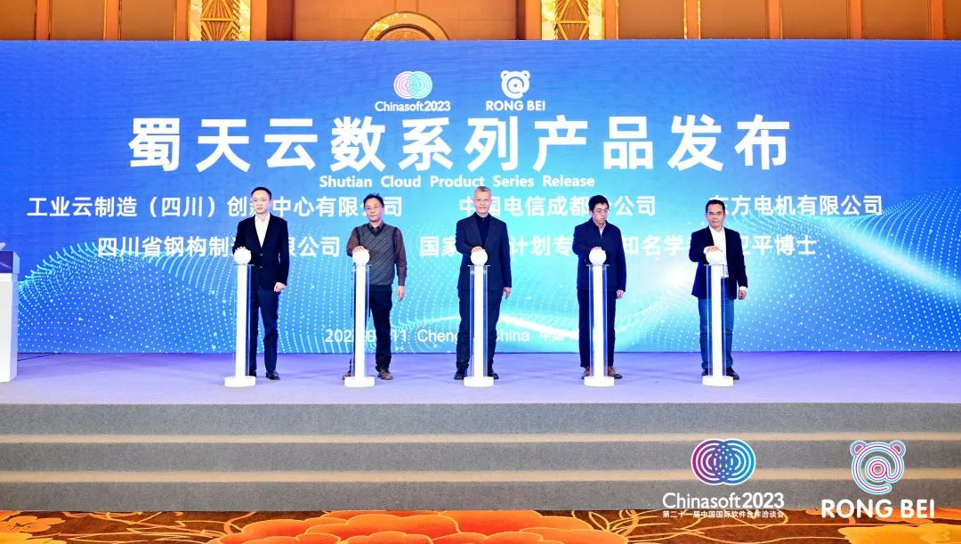 会上,由中国航天科工航天云网四川公司、中国电信成都分公司、东方电机有限公司、四川省钢构智造有限公司、专家吴卫平博士共同发布“蜀天云数系列产品”。