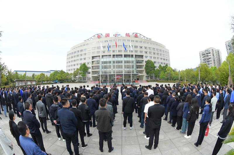 4月24日,航天江南举行升旗仪式,庆祝第九个中国航天日。本部干部职工及贵阳园区各单位代表参加仪式。