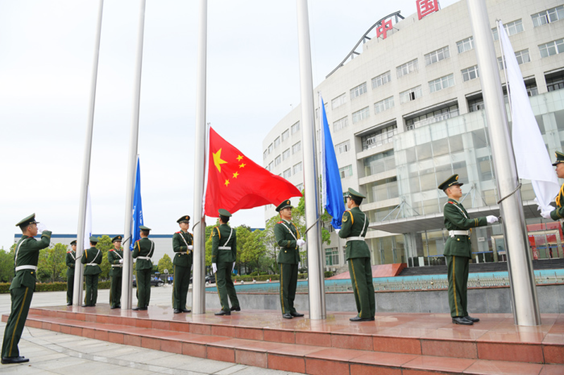 上午8时,升旗仪式开始。伴随着雄壮激昂的国歌及航天科工之歌,五星红旗和集团公司司旗先后升起。办公楼前排成整齐队伍的干部职工精神抖擞,肃然而立,行注目礼。