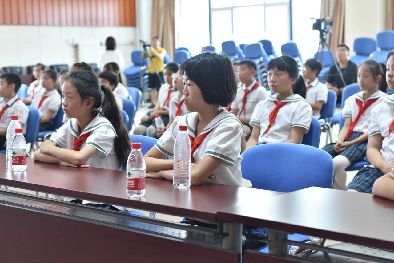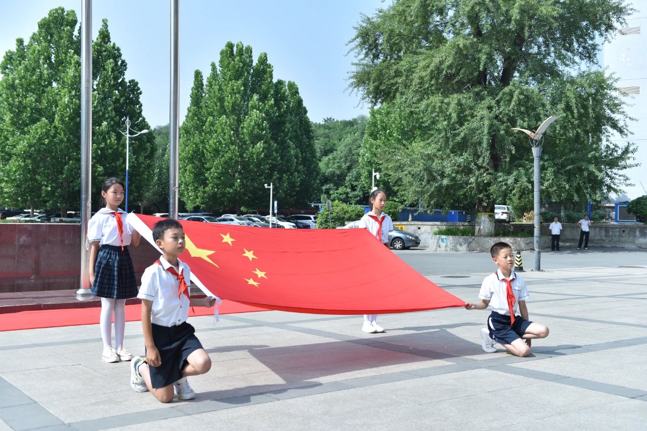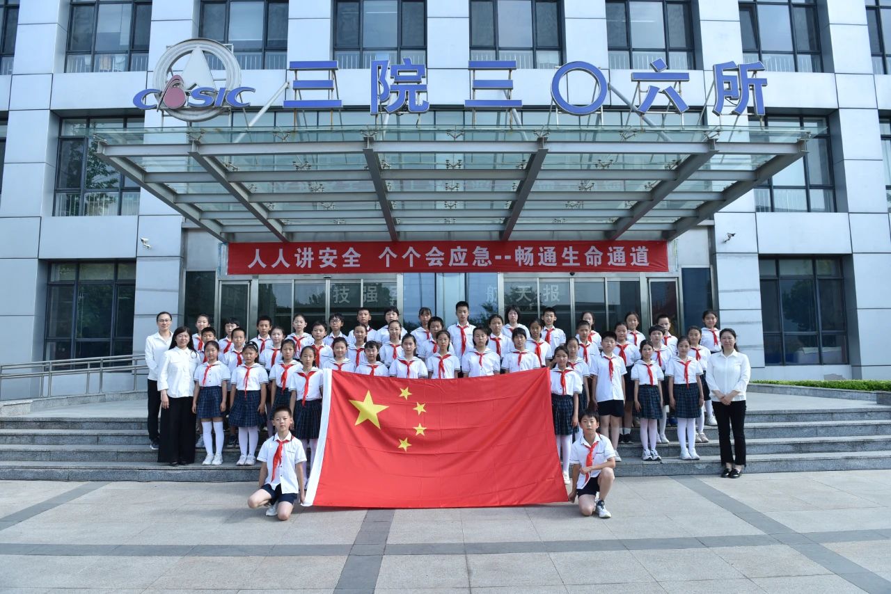 少先队员代表在国旗下表达了对祖国的热爱和对中国航天事业的向往,表示将以航天精神为指引、以航天科研工作者为榜样,刻苦学习,不断进取,努力成为德智体美劳全面发展的新时代少先队员。