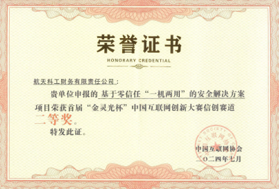 7月11日圆满落幕的首届“金灵光杯”中国互联网创新大赛中,中国航天科工财务公司荣获“信创赛道”二等奖,展现了公司持续深扎金融科技领域,大胆突破、勇于创新的进取精神。