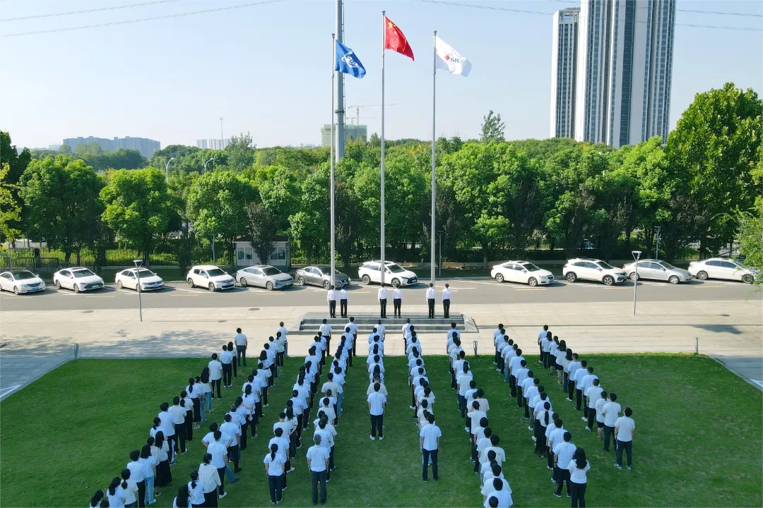 在雄壮的国歌声中,鲜艳的五星红旗冉冉升起。在激昂的集团公司司歌声中,司旗迎风飘扬。