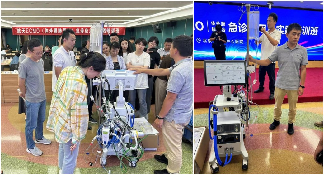 由航天中心医院主办的“航天ECMO(体外膜肺氧合)急诊应用及实践培训班”,面向全国各级医院急诊医学、重症医学、院前急救及救援等专业相关医护人员,重点围绕ECMO开展理论讲解和实操演练。