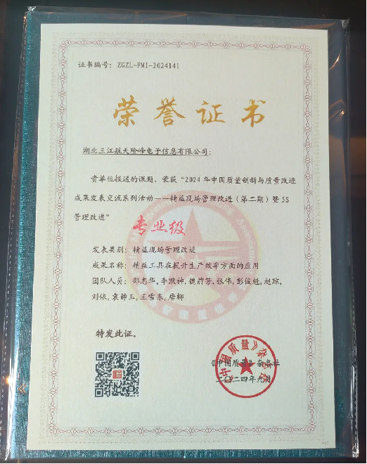 9月26-27日,由中国质量协会和《中国质量》杂志社共同开展的2024年中国质量创新与质量改进成果发表交流活动在天津市举办。在其精益现场管理改进成果(第二期)暨5S管理改进发布赛上,航天科工九院险峰公司发布的《精益工作在提升生产效率方面的应用》课题,凭借课题内容的专业性、严谨性、详实性以及发表人的卓越表现,获得评委的高度评价,在激烈的竞争中脱颖而出,斩获“专业级”荣誉。
