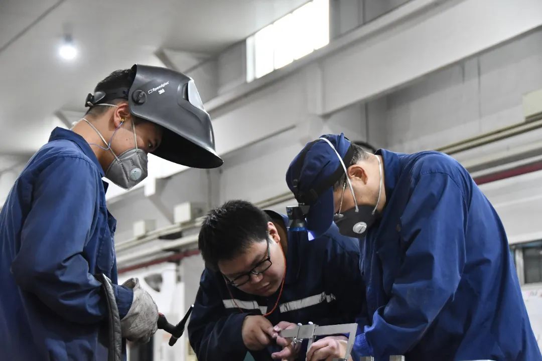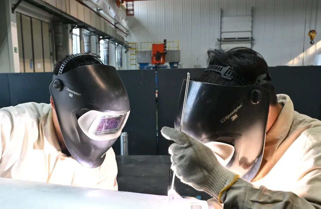 江北公司三车间厂房内焊花飞溅、炉火熊熊。面对产品研制和批量生产任务,车间领导带班协调,调度员悉心协助,技术员随时待命,全员齐心攻克生产难点,全方位保障生产,提升焊接合格率。(图文/杨杰 张浩哲)