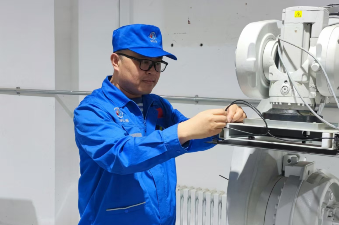 六院科保动力分公司水暖运行组职工正在检测厂区供暖系统燃气管道,确保供暖运行安全,保障六院科研生产不受气温骤降的影响。