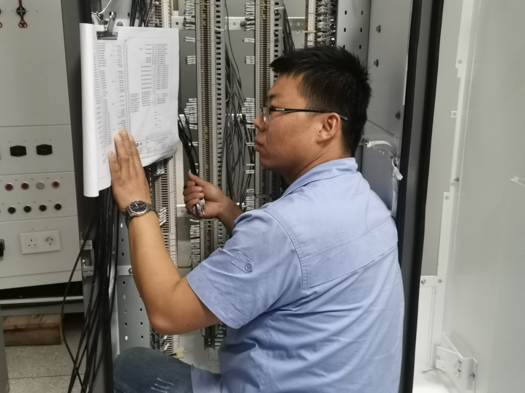 西安自动化生产制造中心职工正在根据图纸进行元器件布局,并按照工艺标准进行装配,确保项目电气装配生产任务按节点完成。