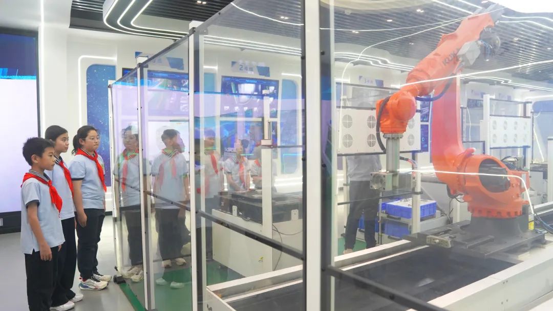 在第十个“中国航天日”来临之际,河南航天举办“走进航天智造 点燃童年梦想”主题开放日,邀请郑州市黄河路第三小学师生参观智能制造车间和产品展厅。学生们近距离观察自动化机器人加工航天零件,聆听“航天讲师”讲解高精尖产品,并在航天先辈故事海报前学习钱学森等老一辈航天人的奋斗精神,激发探索宇宙的热情。