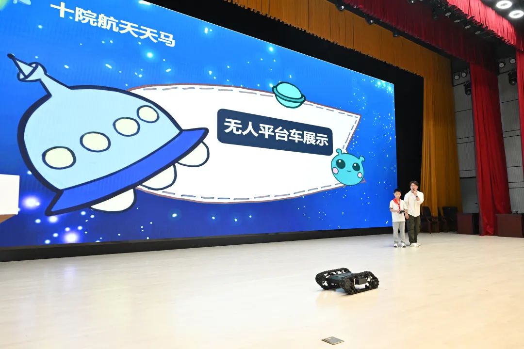 现场问答环节,学生们兴致勃勃“如果家里有人生病了,希望外骨骼可以帮助复健”“希望以后无人车可以帮助我运快递”。近距离接触前沿科技的机会,让抽象的航天概念化作触手可及的“未来”。