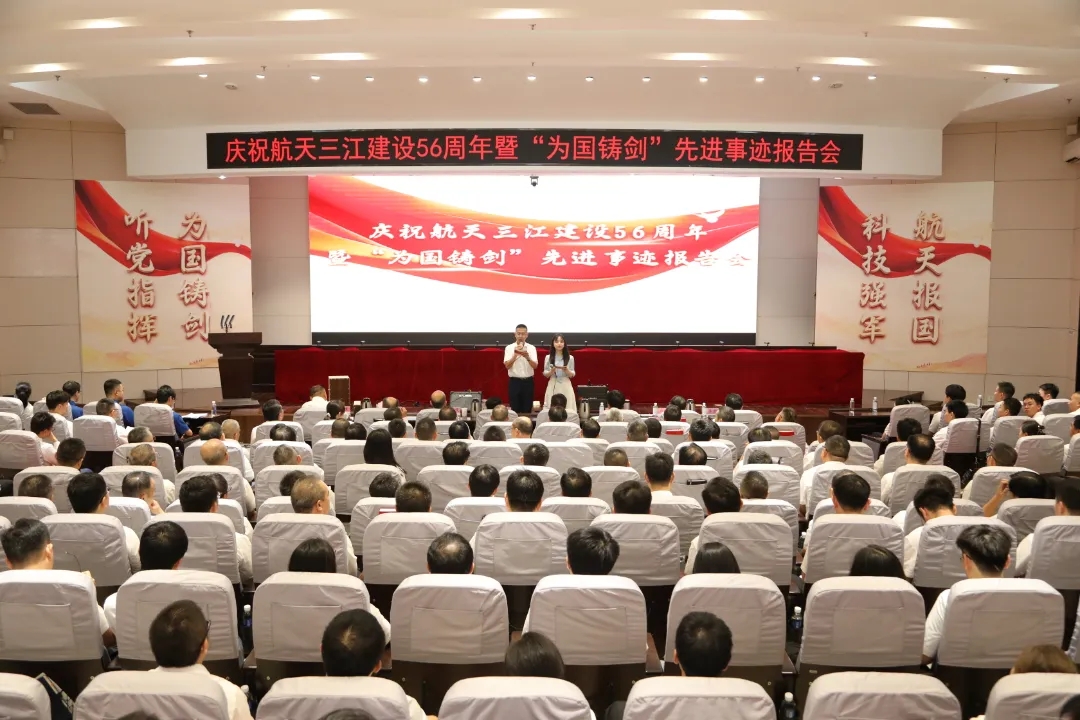 在全党上下扎实开展深入贯彻中央八项规定精神学习教育的关键时刻,在全体航天三江贯彻落实习近平强军思想,满怀必胜信心全力攻坚“十四五”、科学谋划“十五五”的重要时期,8月11日,庆祝航天三江建设56周年暨“为国铸剑”先进事迹报告会在武汉本部报告厅举办。