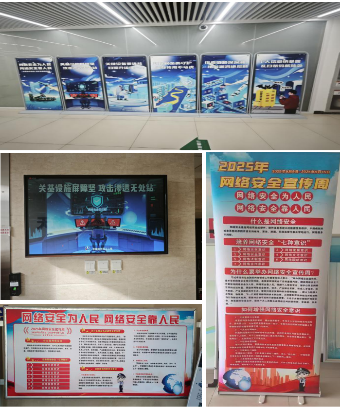 院属各单位积极筹备,精心部署,通过公众号、单位网站、公共区域摆放主题海报和主题标语、楼宇电梯广告屏播放主题视频等方式,构建多维度、全方位宣传矩阵,全面营造浓厚的网络安全氛围。