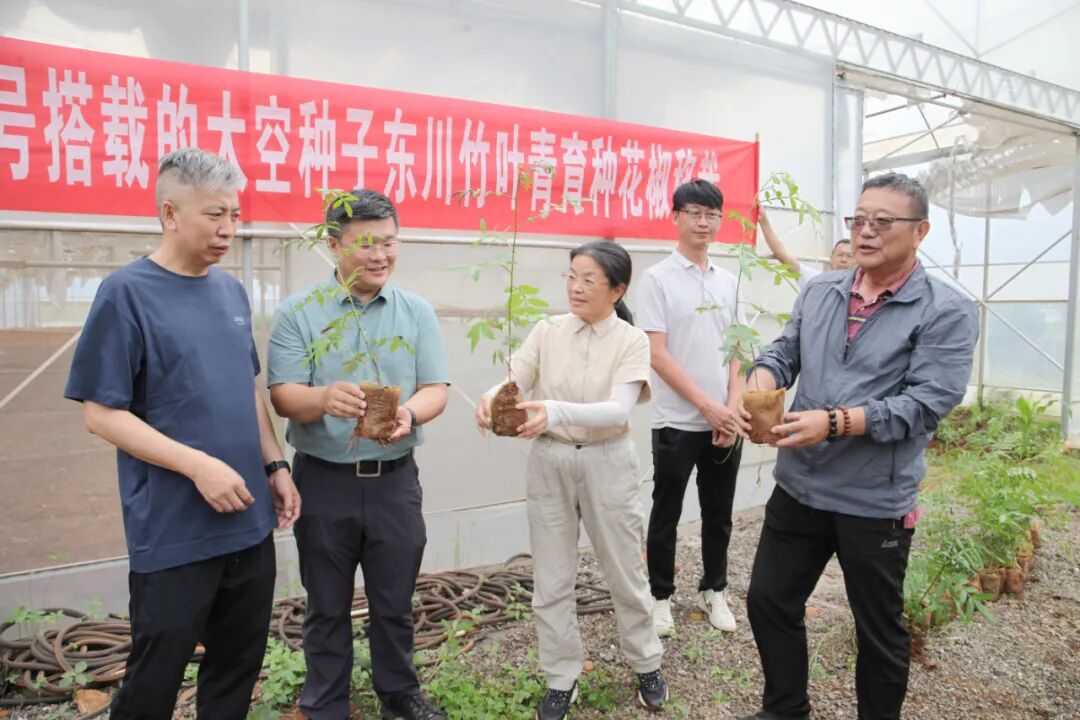 作为助力种业振兴的重点工作,航天三院在集团公司的带领下坚持“地方所需、航天所能”,协调东川区花椒种子搭载神舟十六号飞船进入太空接受为期154天的诱变处理,选育优良品种。经过云南省林科院专家两年的精心培育,今年7月份,首批经过太空育种的30株花椒苗正式移栽到东川区乌龙镇三院帮扶花椒育种基地,开启新的生命旅程。