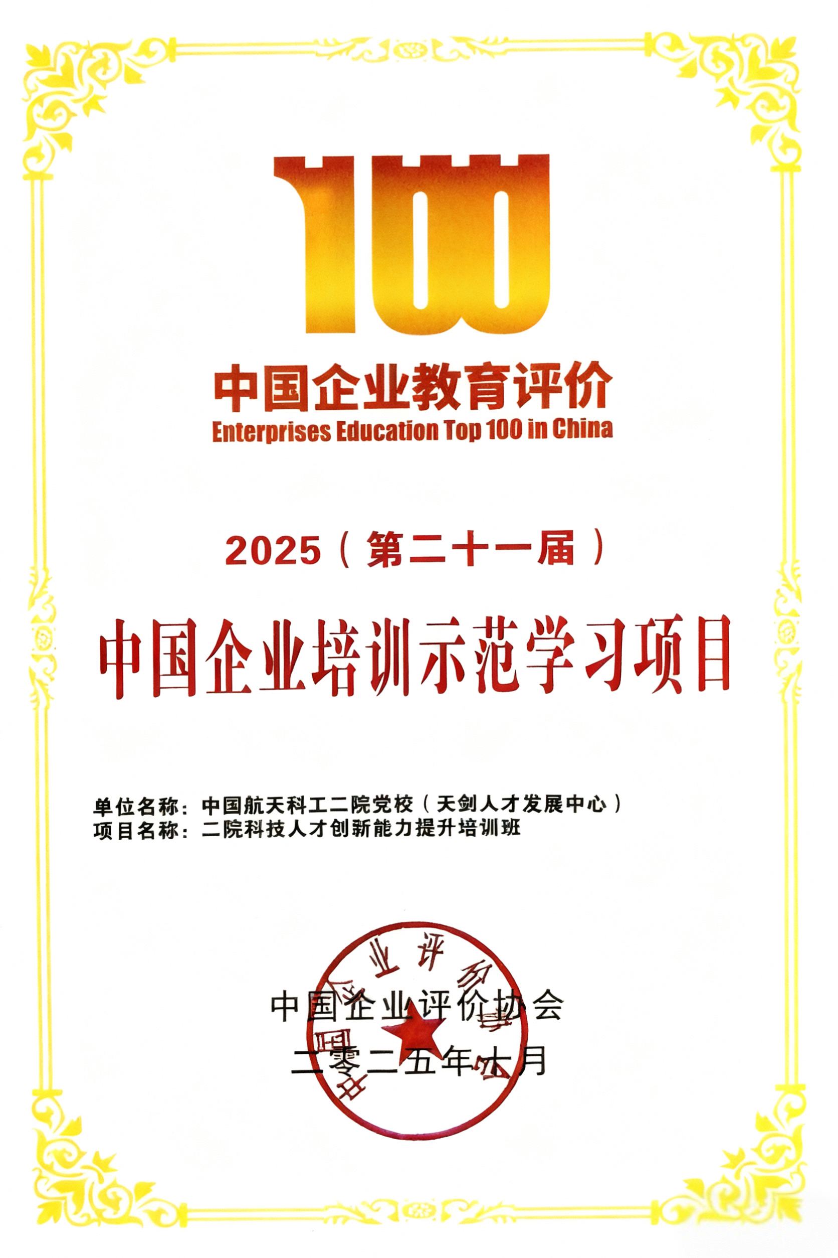 10月23-24日,在第二十一届中国企业教育年度大会暨AI赋能企业高质量发展论坛上,航天二院天剑人才发展中心再次获得“中国企业教育先进单位TOP100”称号,这也是该中心连续4次获此荣誉。3项特色培训项目获得“中国企业培训示范学习项目”荣誉。本届大会重点突出“AI赋能高质量发展”主题,旨在汇聚行业智慧,探索人才发展新路径。天剑中心以“科技人才创新能力系统化提升”为主题,交流分享了二院科技人才培训及创新能力提升培训工作中的实践探索与特色成果。