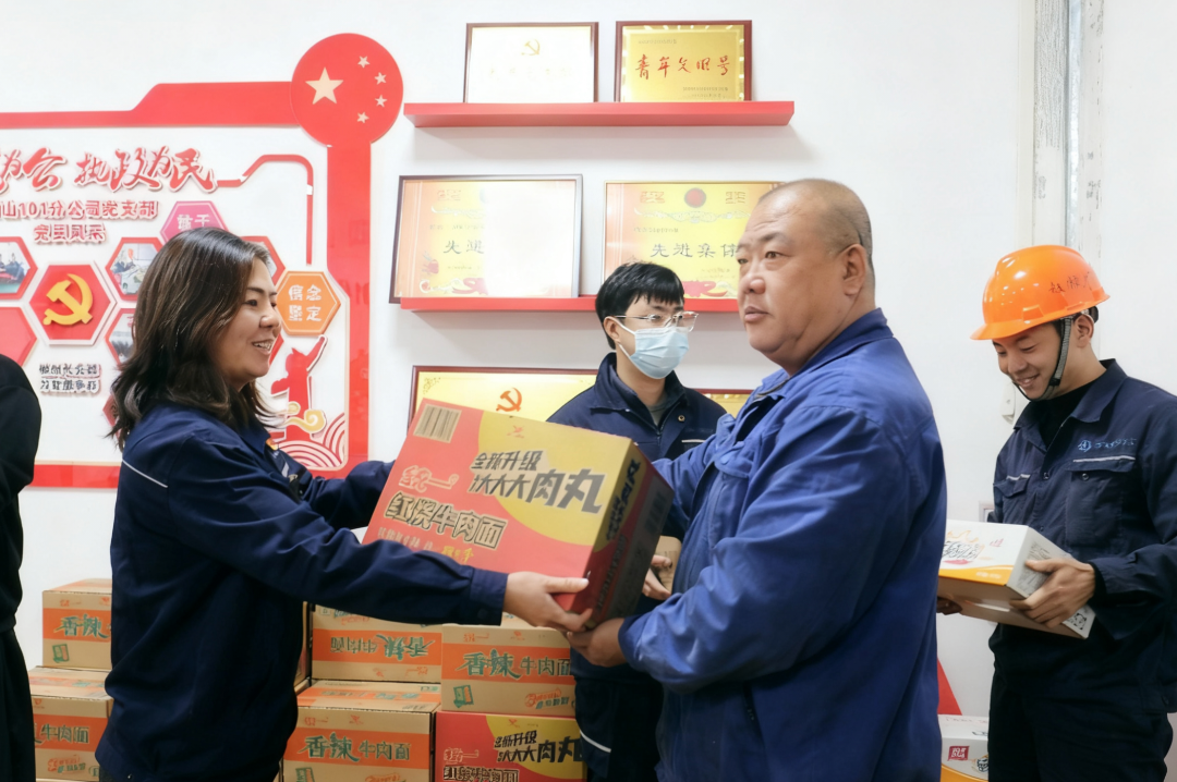 领导带队深入一线,手中是能量满满的物资,眼里是对职工们的殷殷关切。“身体是革命的本钱、吃饱了才有力气干活”,朴素话语如暖阳,照亮了黑夜,也焐热了奋斗者的心。