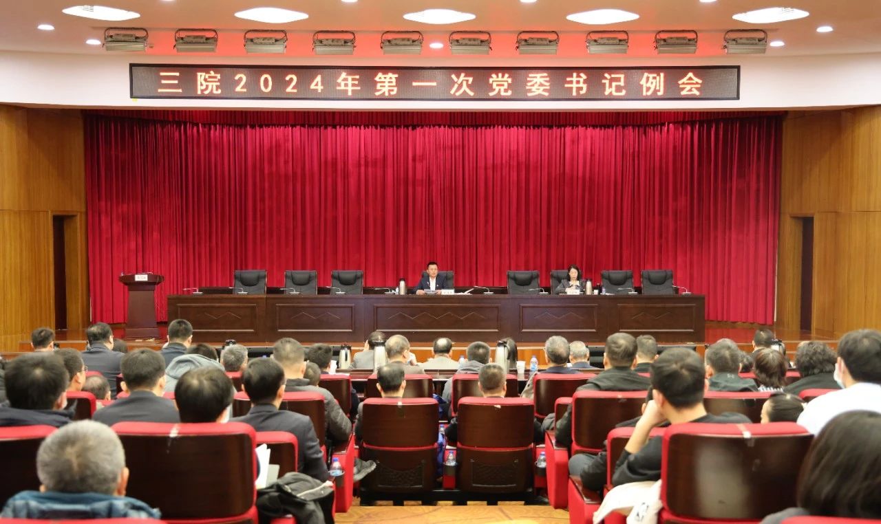 会议对三院2023年四季度党建工作进行全面总结点评,并对2024年一季度重点工作进行部署安排。
