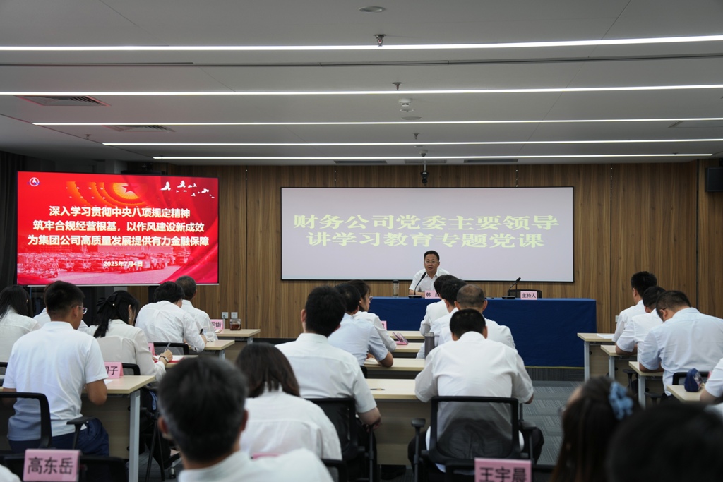 公司党委副书记、总经理韩成作了题为《深入学习贯彻中央八项规定精神,筑牢合规经营根基,以作风建设新成效为集团公司高质量发展提供有力金融保障》的专题党课,从深入贯彻落实中央八项规定精神的时代价值切入,深刻阐明加强作风建设的重要意义,引导公司党员、干部充分认识领会中央八项规定精神的核心要义和实践要求,不断强化纪律合规意识,实干担当、奋力作为。