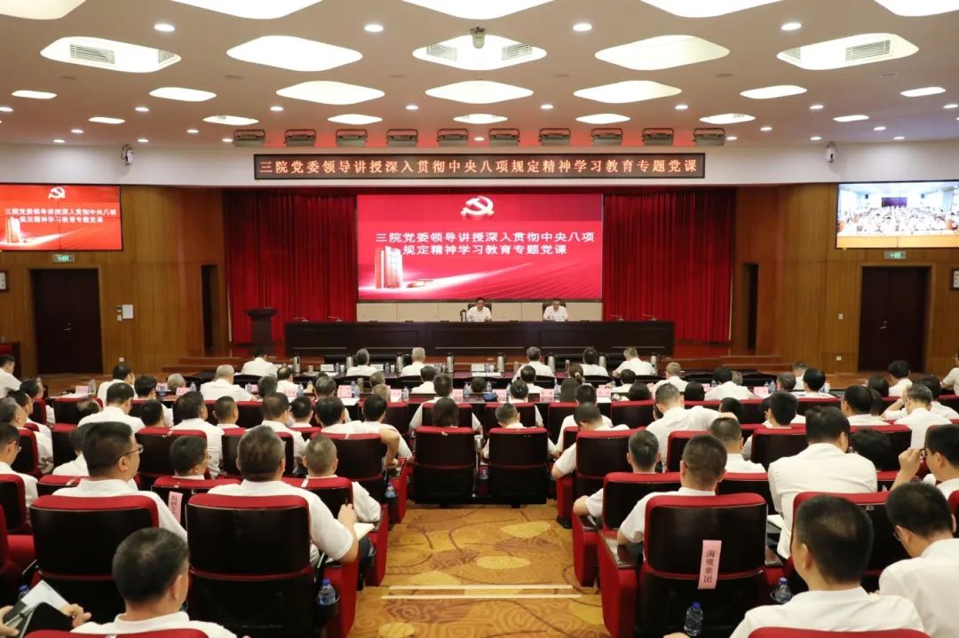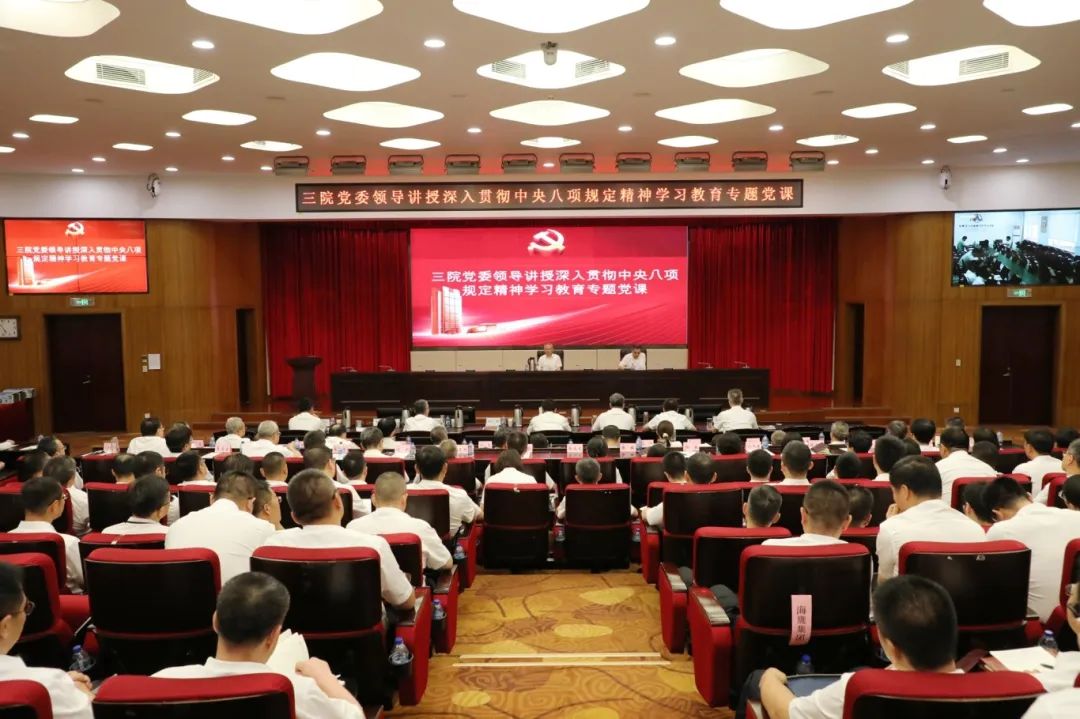 7月4日下午,航天三院党委书记施毅、院长程进讲授深入贯彻中央八项规定精神学习教育专题党课,与党员干部职工再学习习近平总书记关于党的作风建设的重要论述,贯彻落实集团公司系列重要会议精神和党组书记陈锡明同志学习教育专题党课精神,团结动员广大党员干部职工以优良作风奋力开创三院高质量发展新局面。三院全体在家院领导、院科技委领导,院本部各部门(机构)负责人,院属三级、四级单位领导班子成员,三院全体副处级及以上领导人员参加会议。