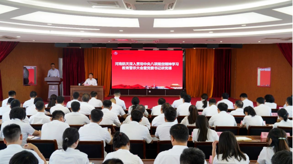 为深入学习领会习近平总书记关于加强党的作风建设的重要论述,扎实推进深入贯彻中央八项规定精神学习教育,7月3日上午,河南航天召开深入贯彻中央八项规定精神学习教育警示教育大会暨党委书记专题党课。会上,党委书记、董事长姚巍林以《持之以恒深入贯彻中央八项规定精神 为河南航天高质量发展提供坚强作风保障》为题作专题党课授课。党委副书记、总经理梁东宇通报全国4起违规吃喝问题,集团公司及河南航天违反中央八项规定精神典型案例,带领大家共同深刻反思在贯彻落实中央八项规定精神方面存在的问题和差距。