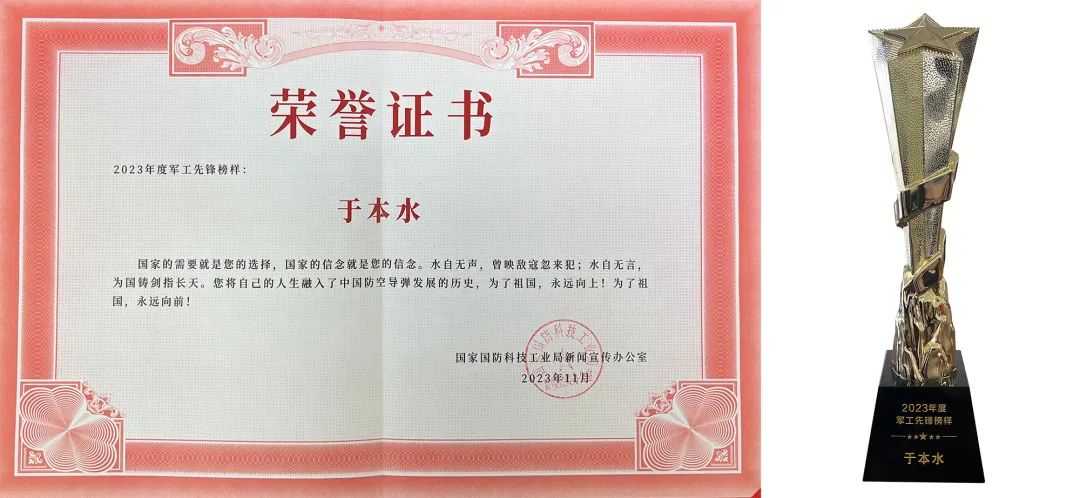 2023年12月28日晚,由中央广播电视总台军事节目中心和国家国防科技工业局新闻宣传中心联合打造的年度重点特别节目《军工先锋》在CCTV-7国防军事频道播出。我国著名防空导弹专家于本水院士当选2023年度“军工先锋榜样”。
