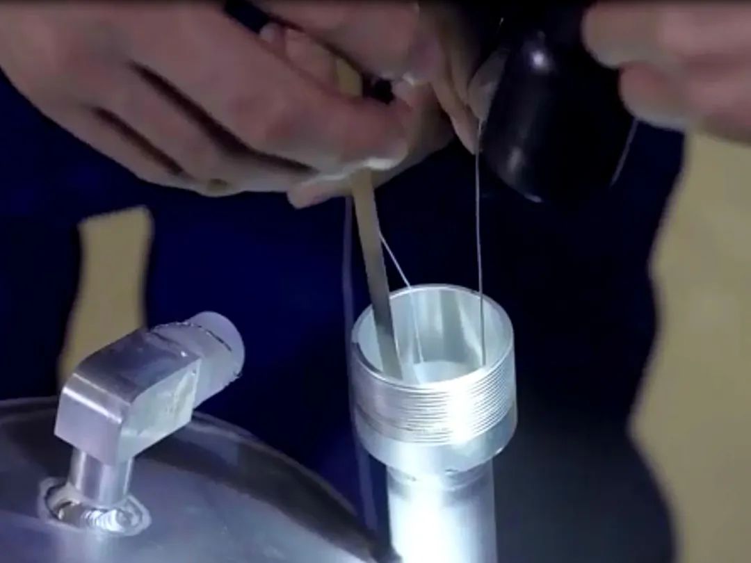 绝不能让油标再掉下去!李军急中生智,让同事用0.8毫米的铅封丝、蜡绑线拴了一个活扣,一只手拿着U型的细铁丝顺下去,再绕过油标提起、捆住、拽紧,再将自制工具和油标慢慢分开。
