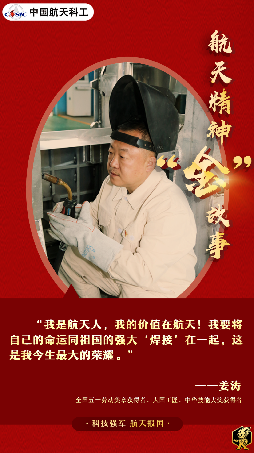 姜涛,是航天江南航天天马的一名工人,当选第十三届全国人大代表,荣获全国五一劳动奖章,享受国务院政府特殊津贴。37年来,他手执焊枪,一次次攻破技术难关,焊接产品多次接受党和人民检阅。