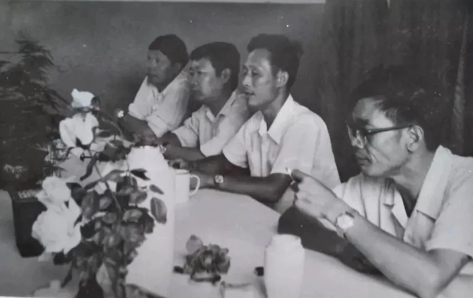 李胜佑(右二)在〇六一基地表彰大会上发言