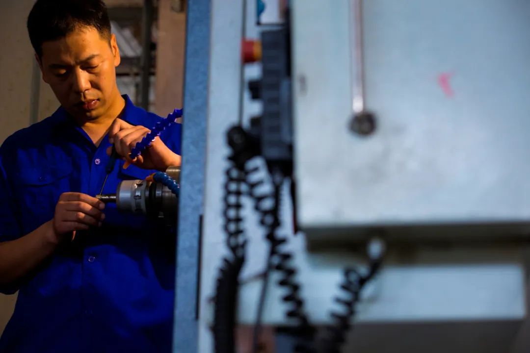 设备启动前,周荣军坐在一张深棕色的老旧木凳子上发呆,右手不停地转笔。同事们见状,打趣地说他这是干活“干傻了”。但其实,那时周荣军脑子里正在“过电影”,从前期准备工作到实际操作流程,在他脑子里闪现了无数次。