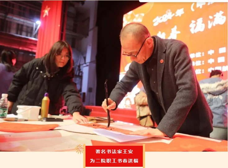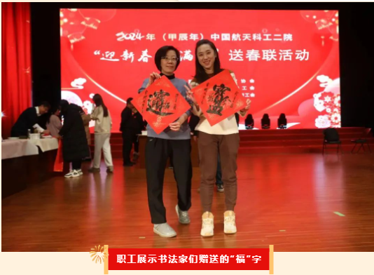 近日,在甲辰年新春佳节即将到来之际,为进一步激发广大职工建功新时代、建设航天强国的豪情,营造喜庆和谐、健康文明的浓郁节日气氛,由中国航天书法家协会主办,中国航天科工二院工会承办,203所工会协办的2024年“迎新春 福满门”送春联活动在二院职工文化中心隆重举行,为广大职工群众送上了新春祝福,传递了节日喜悦。