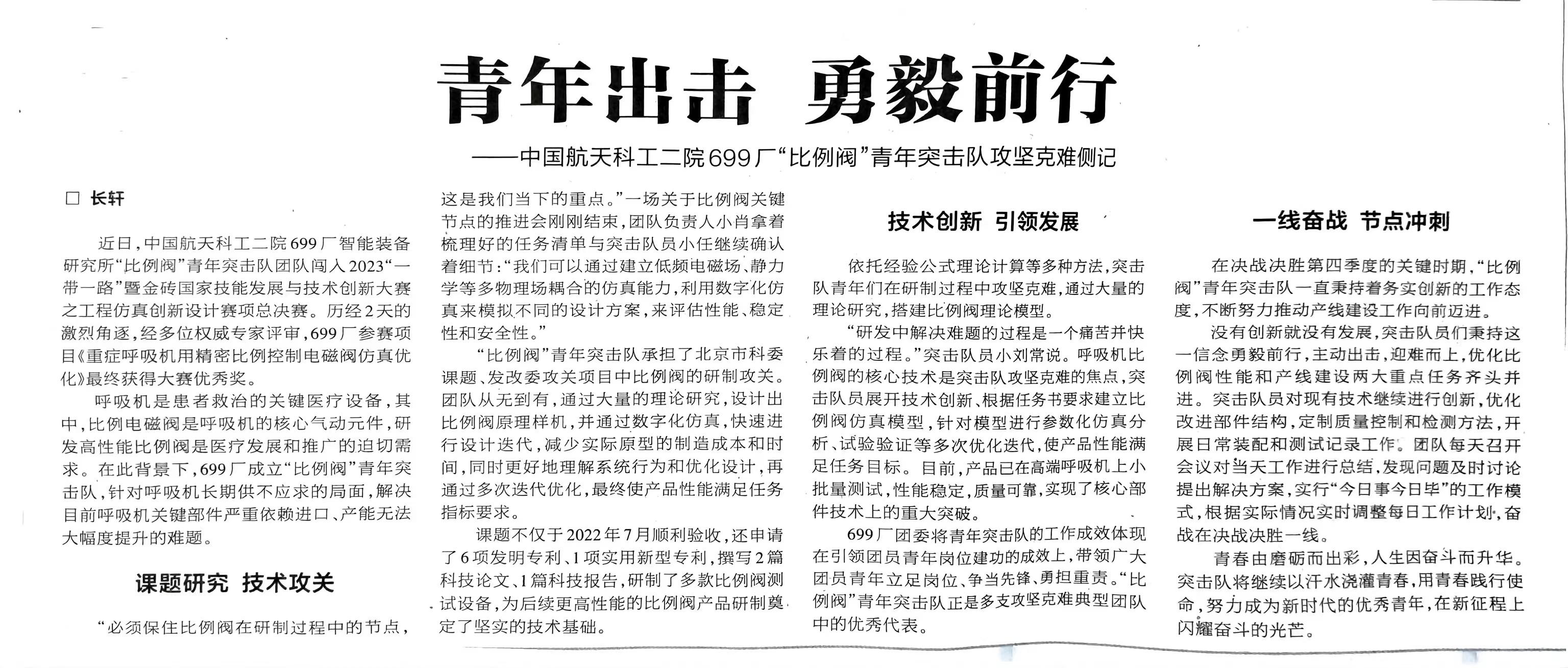 在全年科研生产工作中,青年突击队成绩斐然。在全院一盘棋精神感召下,迅雷青年突击队大力协同,勠力力同心、努力拼搏,加班加点,仅用4天完成兄弟单位某设备生产调试任务,为兄弟单位在空间特殊环境中试验提供了有力保障;二齐青年突击队在承接任务过程中积极创新,自制工装,研究新方法,新技术,使得技术方法有了新的突破,拓宽了699厂承接任务广度;加油杆青年突击队为了全力保障总体在试验场调试进度,将调试任务模块化分配,并责任到人、节点到天,成功配合总体完成联调;“极限冲锋”青年突击队杜绝“差不多”,追求“零缺陷”,认真梳理产品状态,做好工艺审查,提早发现问题,留出解决问题的时间,提前消除质量隐患,为一流质量保驾护航;“创新创效”青年突击队在保障生产任务同时,年度突破性承接15项课题研究工作,编制和修订标准7项,特殊过程确认9项;翱翔青年突击队致力于科研创新,依托型号任务积极开展工艺攻关与工艺细化量化工作,通过创新手段实现精细化管理,获得2023年中国创新方法大赛北京赛区二等奖;“比例阀”青年突击队获2023一带一路暨金砖国家技能发展与技术创新大赛优秀奖。青年突击队始终用青年合力为企业科研生产任务的高质量完成作出了坚强的保障。