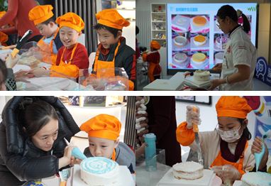 首场活动是趣味满满的航天主题蛋糕制作,在专业烘焙师的指导下,小朋友们小心翼翼地搅拌着面糊、精心摆放着水果和装饰,每个人都全神贯注地投入到自己的“航天蛋糕”创作中。
