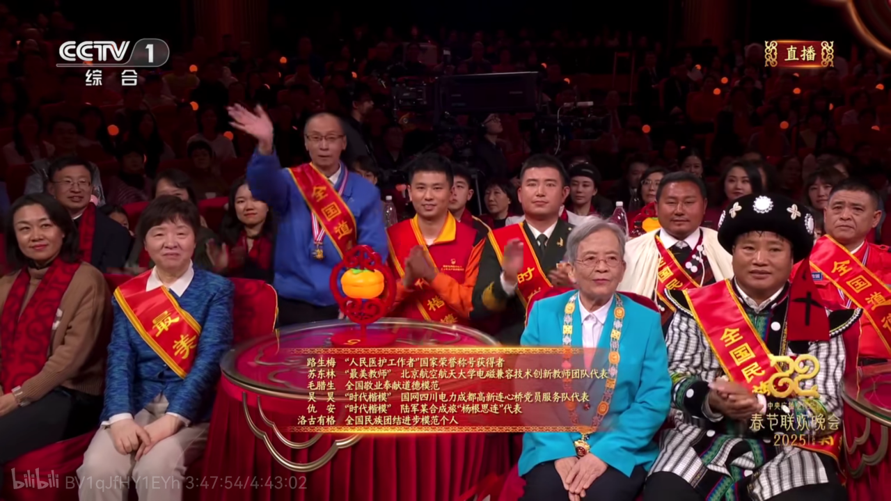 在2025年总台春晚中有一个十分暖人的环节,“人民医护工作者”国家荣誉称号获得者代表、“最美教师”荣誉称号获得者代表、全国敬业奉献道德模范代表等,向全国人民拜年。