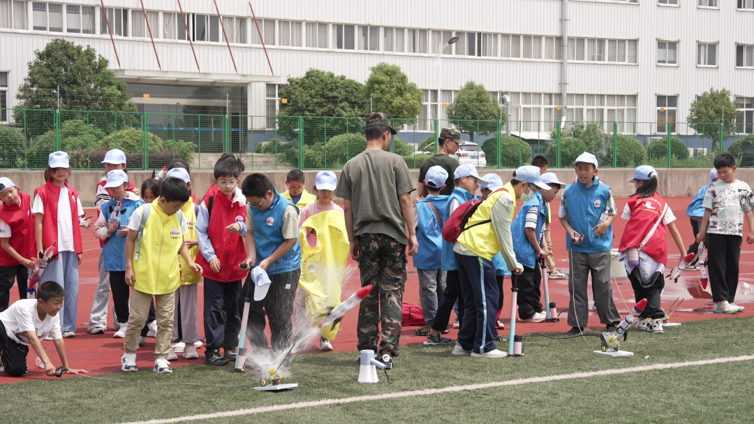 “3、2、1,发射!”随着孩子们清脆的倒计时声,自制水火箭“嗖嗖”地窜上蓝天,孩子们仰着小脸兴奋欢呼,互动体验环节更是将活动推向了高潮。水火箭的制作与发射,让孩子们亲手触摸到了航天的魅力;模拟舱内的太空漫步,让孩子们仿佛置身于浩渺的星空之中,体验到了航天员的艰辛与荣耀……