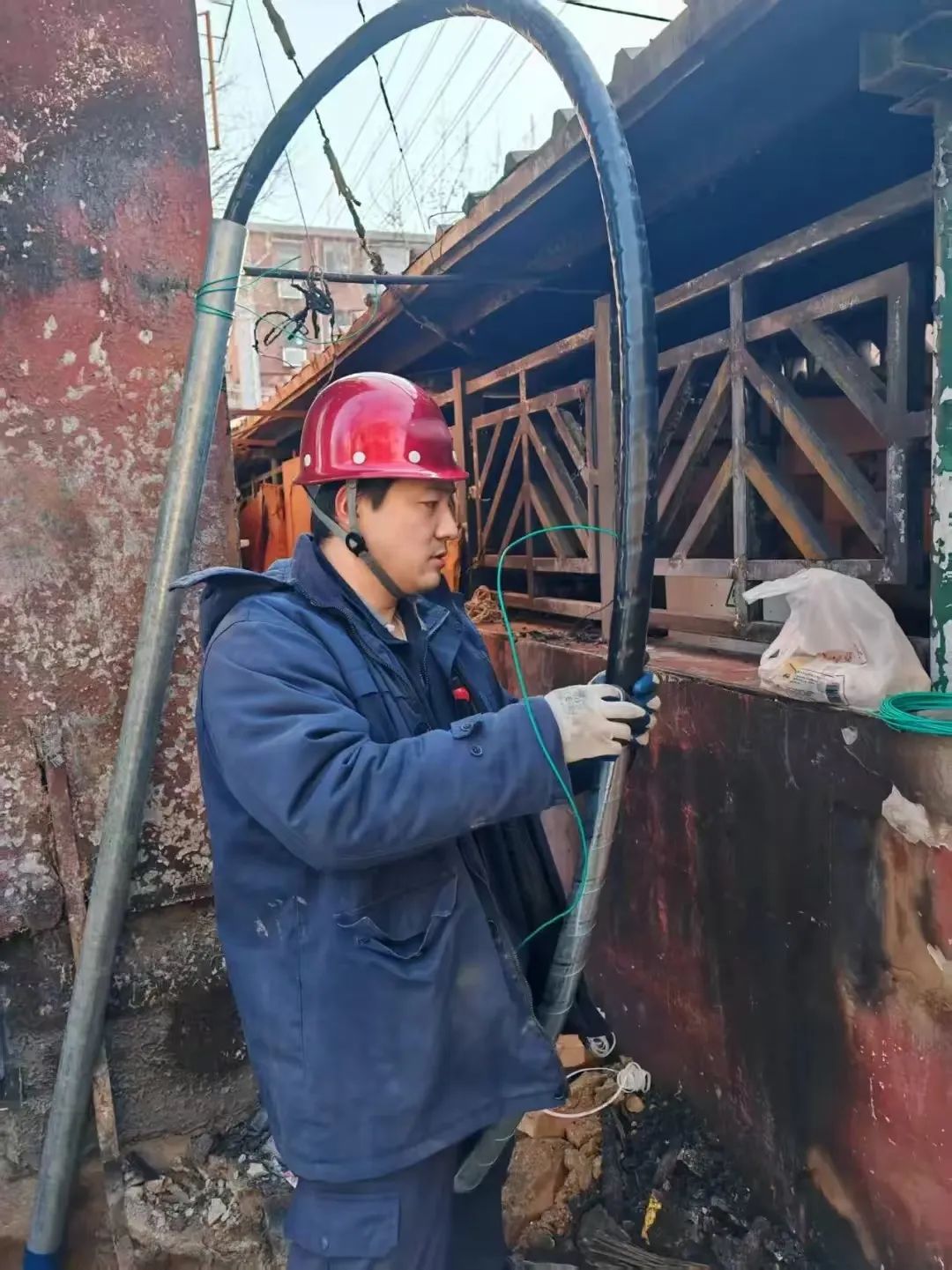 2025年除夕夜,正当家人围炉守岁时,尹航接到紧急抢修电话:“生活区配电箱起火!”他二话不说冲进冷夜,带领团队排查故障点。“当时零下8度,他的双手冻得发紫,却坚持亲手接好最后一根电线。”同事迪林记得,当灯光重新亮起时,小区居民隔着窗户喊“谢谢”,那一刻,这个硬汉眼里闪着光。