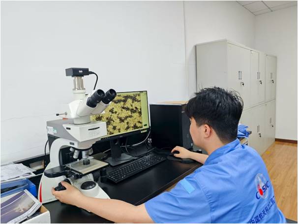 在相对安静的金相制备与分析室内,则是另一番“于无声处听惊雷”的景象。金相组员小天正在显微镜下经历着一场更为精细的“寻微”之战。经过严谨打磨、抛光、腐蚀的样品被逐一置于高倍显微镜下。小天伏在目镜上,全神贯注,仿佛要将整个身心都融入材料微观世界。他缓慢而精准地旋动调焦旋钮,目光如最精密的探针,在马氏体的森林与奥氏体的沙漠间反复巡弋,不放过任何一丝组织异常的蛛丝马迹。寂静中,唯有仪器细微的运转声与客户间偶尔压低交流的声音。突然,他目光一凝,在数十件试样中又锁定了一件组织异常试样,果断标记,