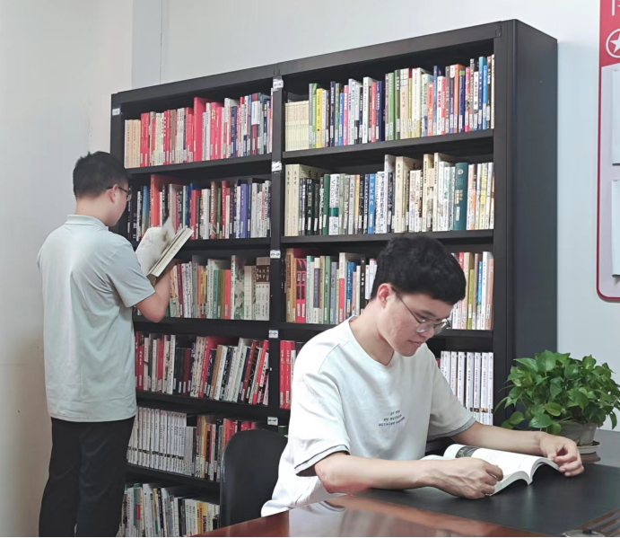 图书角里,专业书籍、文学名著整齐排列,技术部门小李表示:“上次项目遇难题,来这里翻书找灵感,和同事一聊,思路就有了。”
