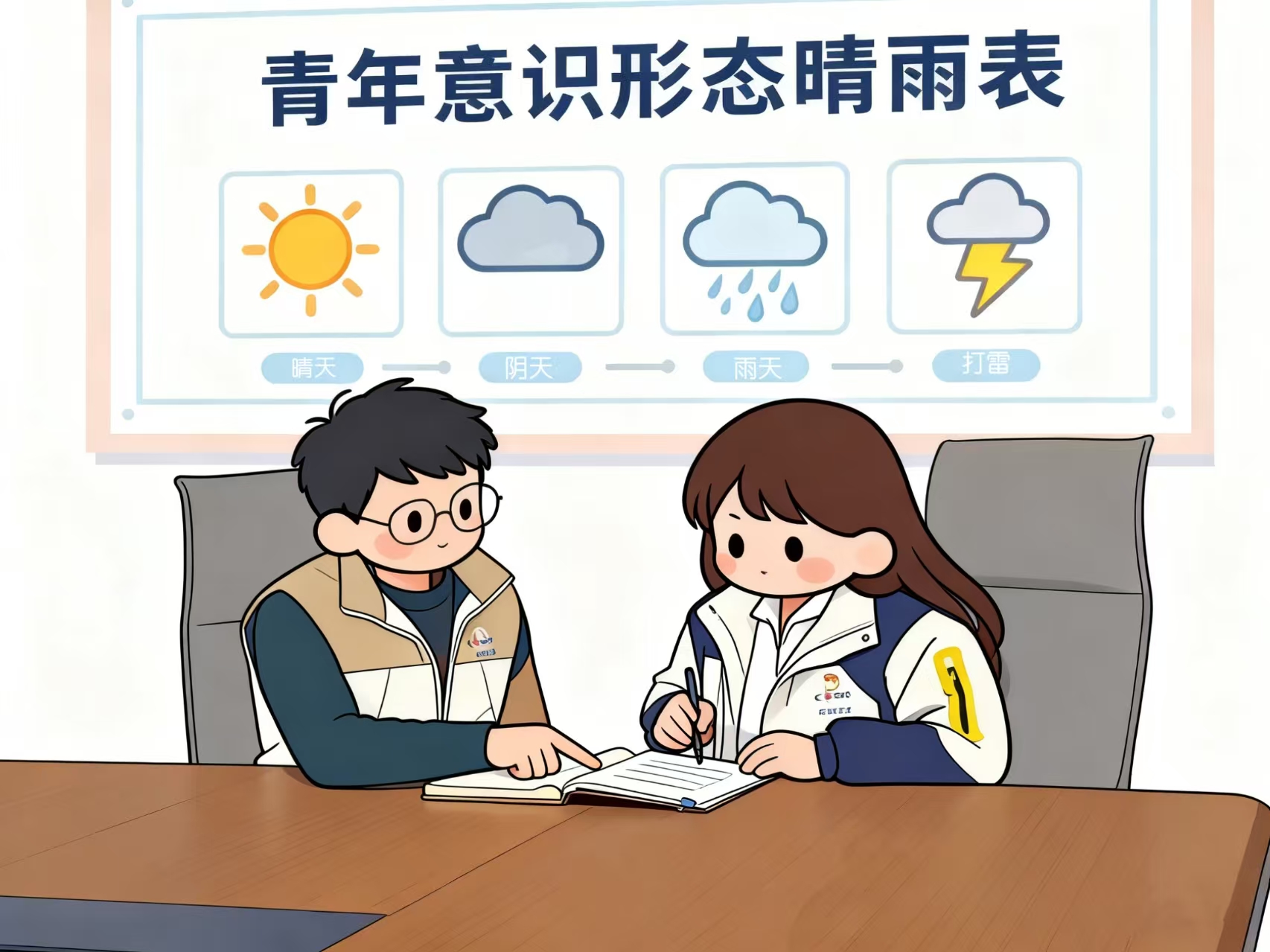 “青年的困惑,就是我们的工作重点。”收到反馈后,团支部书记小赵迅速与小张沟通,摸清其“压力源”,并根据晴雨表判定标准,将小张的状态定为“雨”级——思想有波动、情绪有焦虑、需求有诉求,随即上报公司党支部李书记。